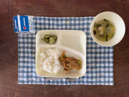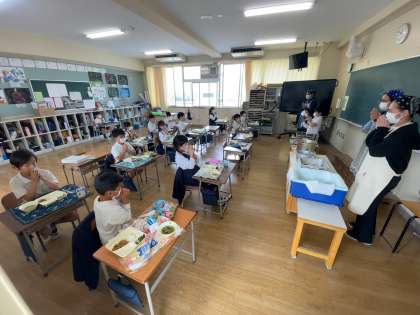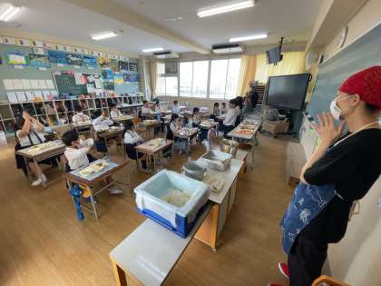 2年生の子どもたちはどのメニューもおいしそうに食べていました。特にピリ辛丼が人気で、おかわりをたくさんしていました。