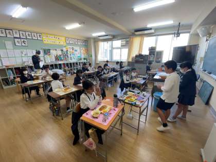 4年生の子どもたちはどのメニューもおいしそうに食べていました。特に、変わりピザが人気で、おかわりのじゃんけんもヒートアップしていました。