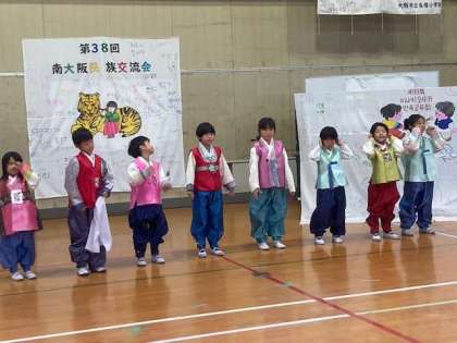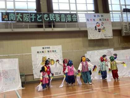 これは西成区・住吉区・住之江区の3区で韓国・朝鮮につながりのある児童生徒が集まり、楽器や踊りなどの発表を行う行事です。