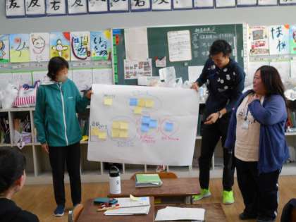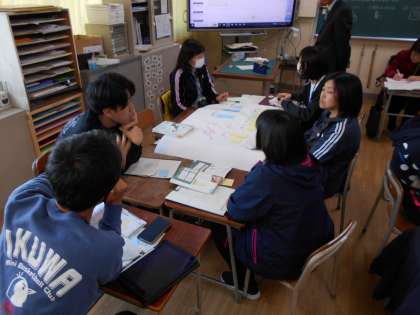 4年2組の研究授業を参観し、研究授業の振り返りを行いました。学級担任の発問や子どもたちの様子などを話し合い、今日の授業のよかった点や工夫した点について交流しました。