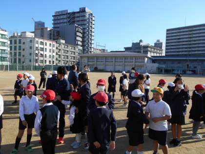 今日の児童集会は「コンビニへ行こうよ」でした。集会委員会が「プリン」「ポテトチップス」など、コンビニにある商品を言った後、その文字の数の人数でグループを作って集まりました。みんなで声を掛け合い、とても楽しそうに活動していました。