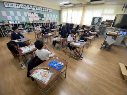 11月27日の2時間目は、図工の授業で「くぎうちゲーム」を作成しています。