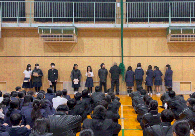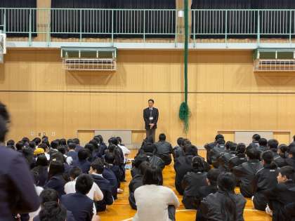 12月16日の朝、体育館で合同全校朝会・集会が行われました。