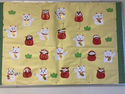 小学校ピロティにすまいる学級の1月の作品が掲示されました。