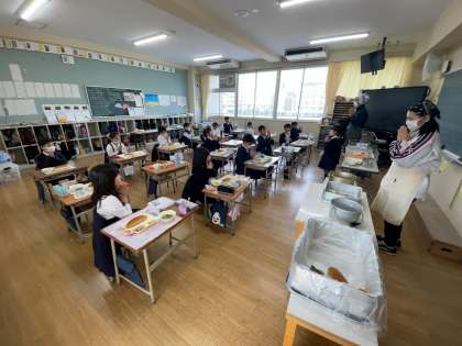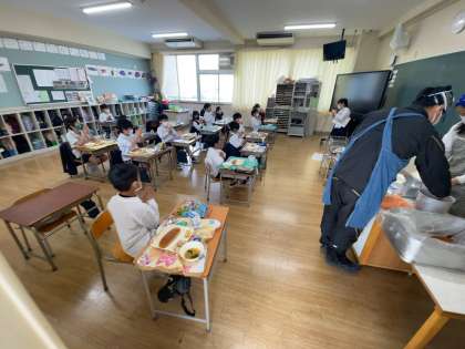 2年生の子どもたちはどのメニューもおいしそうに食べていました。特に、鶏肉のから揚げが人気でした。