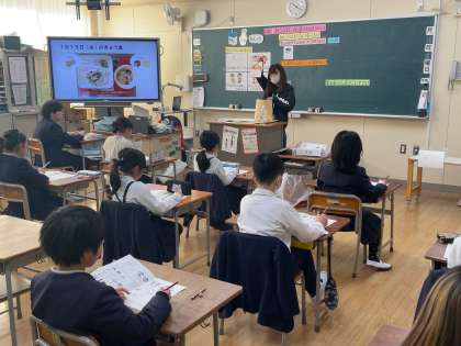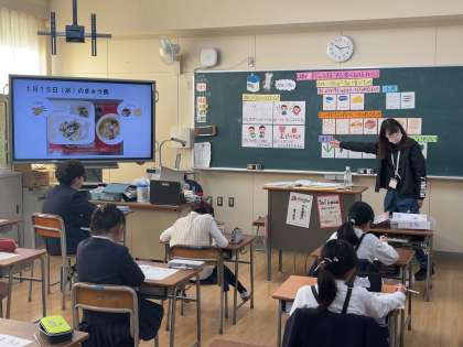 1月16日の2時間目は、栄養教諭による「ほねをじょうぶにする食べ物を知ろう」の学習をしました。