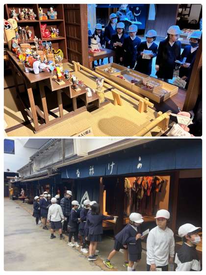 子どもたちは、200年の時空をさかのぼり、大坂の商家の賑わい、四季折々の年中行事、そして日々の暮らしが体感できました。また、金魚売りの声、雨音、犬や鳥の声、昼の町、夕焼け、夜の町…など、大坂町三丁目の一日のうつりかわり、人々の生活を音や効果で体験することができ、今のマンションや戸建ての家との違いや街並みの雰囲気の違い、昔の人々の日々の生活の様子に驚いていました。