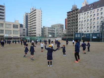 朝の時間に運動委員会が中心になって「なわとび集会」を行いました。子どもたちは寒さに負けず、音楽に合わせて元気に跳んでいました。跳べる回数も増えてきたようで、とてもいい汗をかいていました。