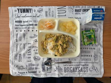 8年生の子どもたちはどのメニューもおいしそうに食べていました。特に、親子丼が人気でした。