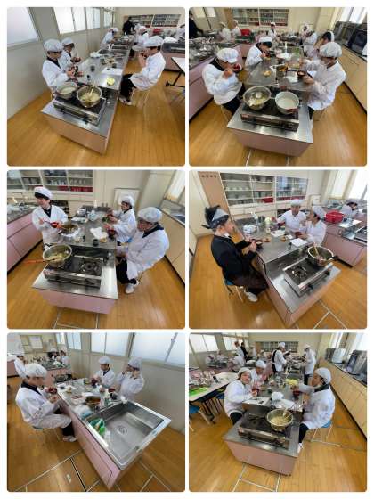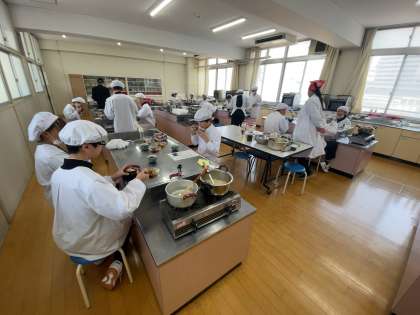 1月24日の3・4時間目は、家庭科の授業で、出汁(だし)を使った料理「簡単にゅうめん」と「みたらし団子」を作りました。