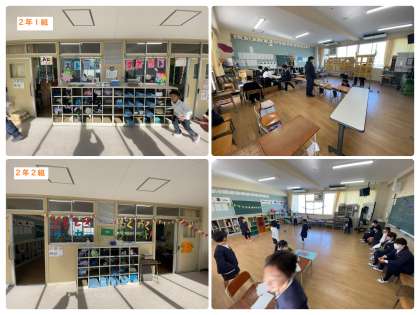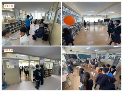 ・教室では大きなゴム風船を使ってバレーボールをしました。廊下では水の入ったペットボトルをピンにして、ボーリングをしました。