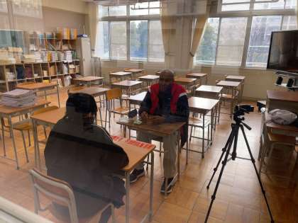 1月30日の2時間目は、9年生の授業でC−NETの先生によるスピーキングテストの練習をしました。