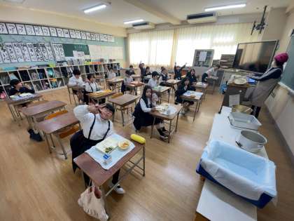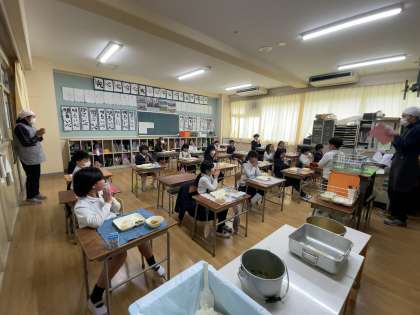 3年生の子どもたちはどのメニューもおいしそうに食べていました。特に、鶏肉のおろしじょうゆかけが人気でした。