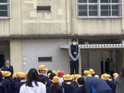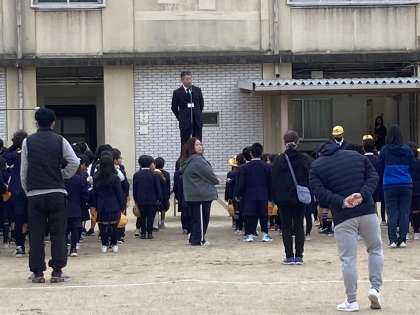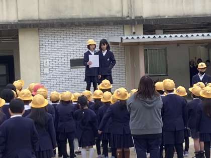 朝会担当の先生からは2月の生活目標「寒さに負けないで、運動場で元気よく遊ぼう」について話されました。また、運動委員会からは2月6日から始まるかけ足週間のお知らせがありました。