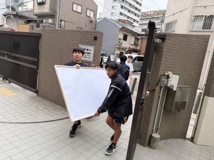 本校バスケットボール部のみなさんと先生方が今宮工科高等学校へ引き取りに行きました。