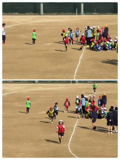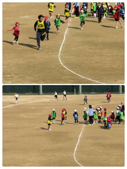 人数の関係で、黄色チームは先生が走って大差をつけていましたが、途中で青チームと赤チームが追い抜き、最後は青チームが1等賞でした!