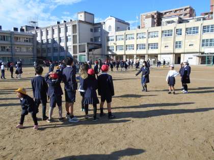 今日の児童集会は「大なわ」でした。たてわり班のメンバーで八の字跳びを行いました。低学年の児童が跳ぶときは、なわを回す高学年の児童がタイミングを合わせて、ゆっくりと回していました。跳べたときはとてもうれしそうで、どの児童も楽しそうに取り組んでいました。