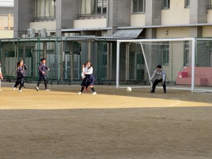 2月13日の5時間目は、体育の授業でサッカーをしました。
