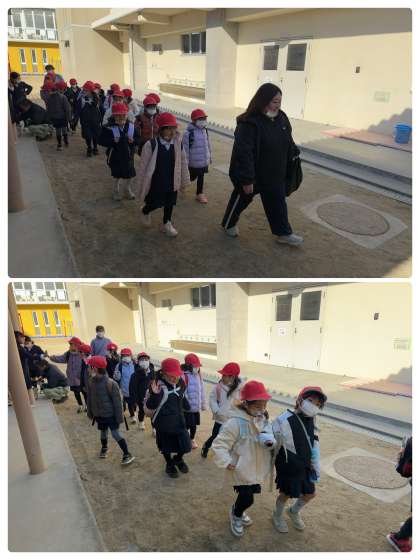 2月14日の午前中は、まち探検で「こどもの里」や地域を探検します。