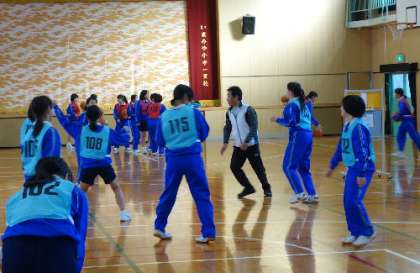 女子のバスケットボールの審判には長吉教頭先生、小学校の村尾先生が加わってくださいました。