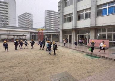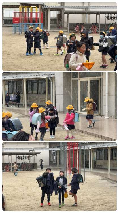 2月19日の放課後、子どもたちが下校するタイミングで雪がたくさん降っていました。
