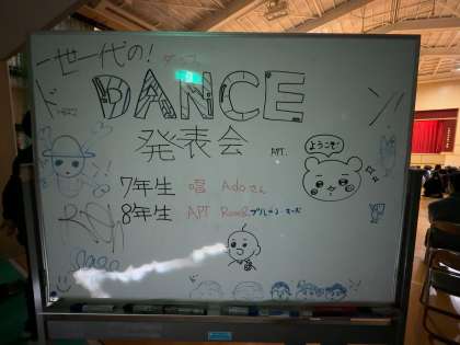 2月21日の5時間目は、小中合同行事で、7・8年生のダンス発表会を行いました。それぞれの学年が体育の授業や休み時間も使って練習をしたダンスを、1年生から9年生までの全員で見ました。
