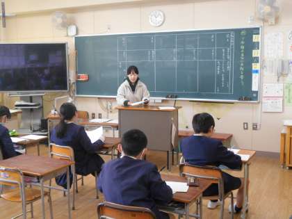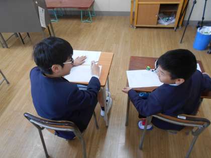 3時間目、4年生は国語科の学習「十年後の自分に手紙を書こう」の学習に取り組んでいました。子どもたちは、自分がこれから10年経ったとき、どんな人になりたいかを想像し、将来の夢や希望をワークシートに書いていました。それを友だちと伝え、交流しあっていました。子どもたちは友だちの夢や希望を真剣な表情で聴き合っていました。
