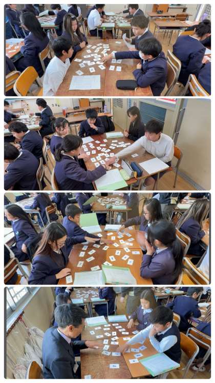 2月25日の3時間目は、中学校の理科の先生の授業で元素記号カルタをしました。