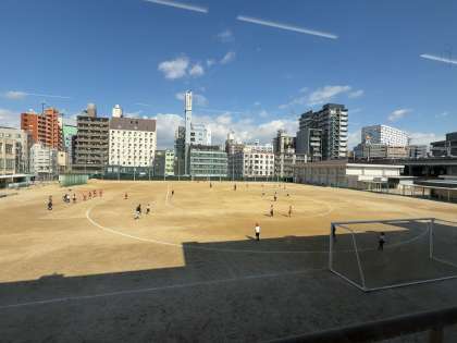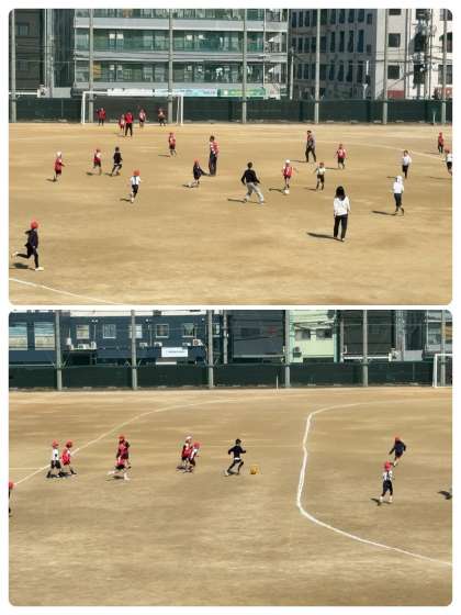 本校の運動場は、「フルコートが取れる」として、中学生の公式戦でも会場になります。その運動場全面を使ってサッカーをしました。