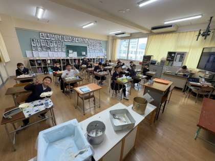 4年生の子どもたちはどのメニューもおいしそうに食べていました。お昼からの立志式に向けてたくさん食べて元気を付けましょう。