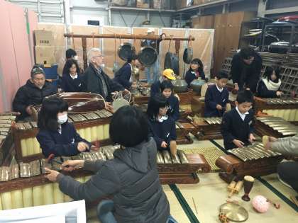 3学期最初のクラブ活動となりました。写真は国際クラブのようすです。今回、国際クラブでは、地域で行われていたインドネシアの楽器であるガムランとダンスの体験に参加しました。初めて聞く音色に驚きながら、指先を意識した踊りを楽しむことができました。