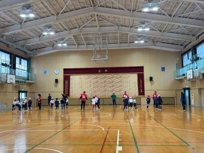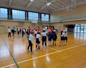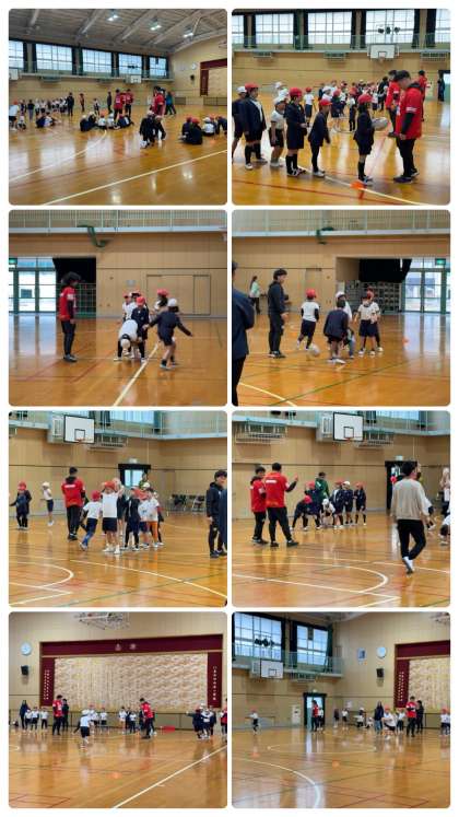 子どもたちは、初めて触るラグビーボールに戸惑いながらも、みんなで協力してパスをしたりして、ラグビーに触れ親しんでいました。