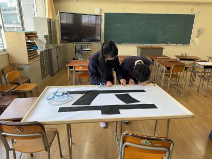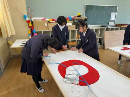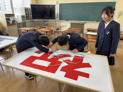 3月6日の2時間目に、6年生のみなさんが記念パネルにLEDテープを張り付けてくれました。