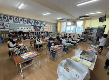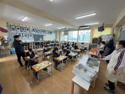 1年生の子どもたちはどのメニューもおいしそうに食べていました。特にさけのクリームスパゲッティが人気でした。