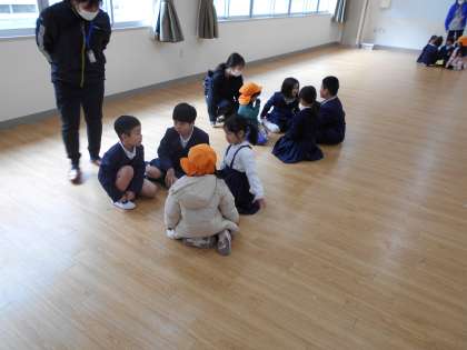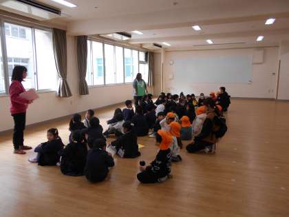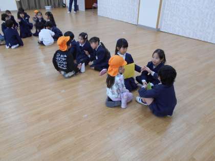 1年生はわかくさ保育園の園児と交流しました。それぞれの児童と園児の皆さんが、自分の好きな食べ物や動物を伝え合い、自己紹介をしていました。とても仲良く交流していました。
