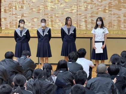 今日は表彰が目白押しの全校集会でした。今宮中生の頑張りに何度も大きな拍手が全校生徒からおくられ、とても気持ちの良い9年生にとって中学校生活最後となる全校集会でした。