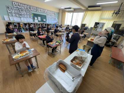 4年生の子どもたちはどのメニューもおいしそうに食べていました。特にとうふのミートグラタンが人気で、たくさんおかわりしていました。