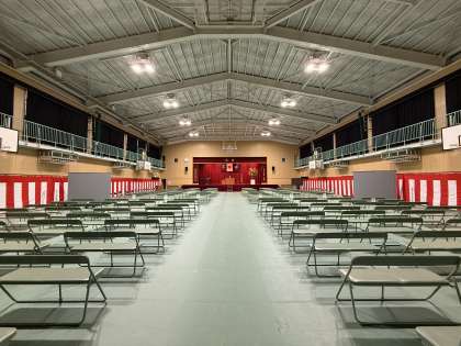 在校生や教職員、地域の方のみんなで会場を作りました。