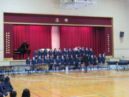 卒業式の後、6年生は体育館に移動し、児童会が企画した「卒業を祝う会」を行いました。これまでお世話になった6年生に向けて、どの学年の演技やメッセージからも、ありがとうの気持ちがいっぱいにあふれ、6年生たちは在校生の演技やメッセージをしっかり聴いていました。また、卒業する6年生も、在校生にありがとうのメッセージを歌や合奏に込めて伝えていました。最後は5・6年生の校歌の合奏のもと、全員で校歌を歌いました。心あたたまる素敵な「卒業を祝う会」でした。