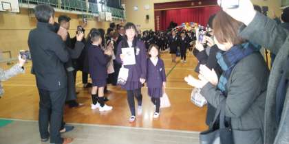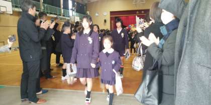 最後の退場は在校生で花道を作り、1年生が6年生を送ってくれました。