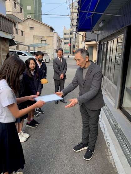 そのお礼の気持ちを込めて、運営委員会と執行部のメンバーで橋本商会様へお礼状を渡しに行きました。