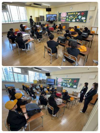 1年生の教室では、新2年生が1年生の時に作成した「学校生活について」の動画を見ました。1年生のみなさんは、これからの学校生活について知ることができて、少し安心したようです。
