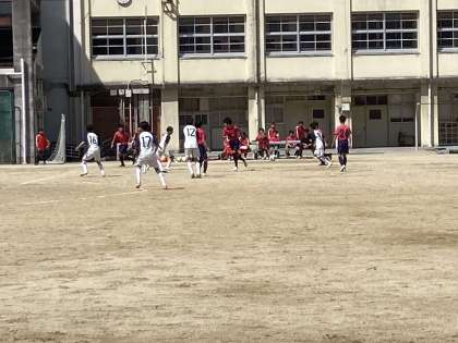 4月12日の土曜日の午前中、グランドではサッカー部が、体育館ではバスケットボール部が春の大会に向けて、練習試合を行っています。