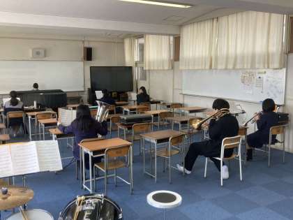 音楽室では吹奏楽部が6月に行われる西成区政100周年記念行事に向けて練習をしています。
