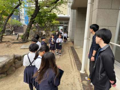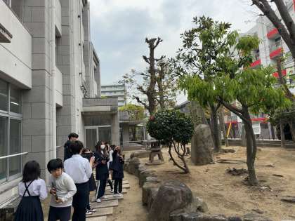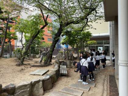 4月18日の2時間目は、図工の授業で、普段よく見る風景の一部である「木」を観察するために、学習者用端末をもって今宮の森に行きました。