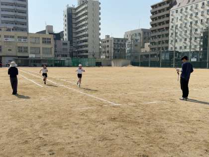 4月18日の6時間目は、体育の授業で50m走を計りました。