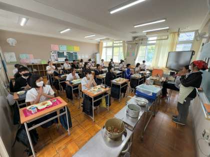 「ごまかかいため」は、ゆでた「たけのこ」をゆででいためたものをみりん、こい口しょうゆで味付けし、かつおぶし、いりごまを加えてさらにいためたものです。子どもたちはごはんに添えて食べましたが、特にこい味付けではなかったですが、旬のたけのこがとてもおいしかったようです。