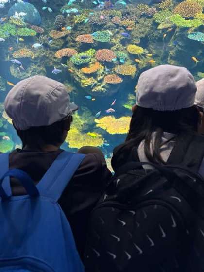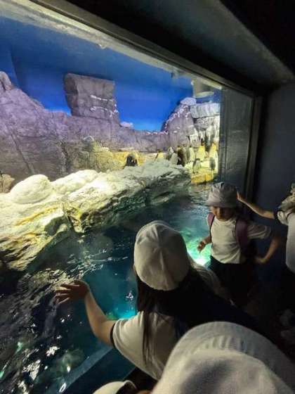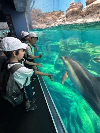 イルカ、ペンギン、熱帯魚を観て大喜びです。