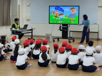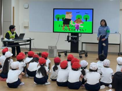 知らない人について行ってはいけないことや様々な交通ルールについて、わかりやすく優しく教えていただきました。
