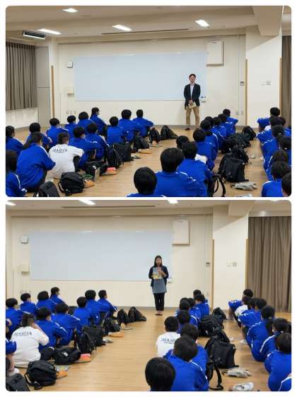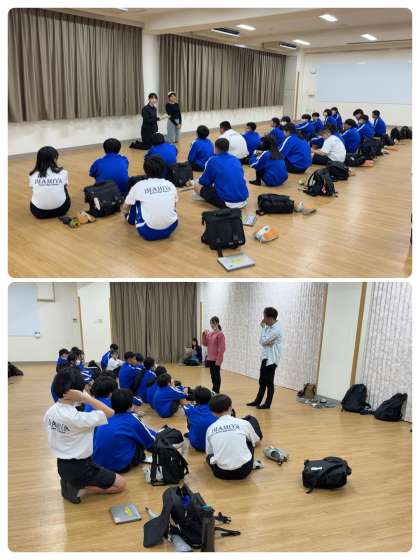 副校長から、8年生の頑張り、万博でたくさんの異文化に触れることができたこと、家に帰るまでが校外学習なので事故怪我がないように他の話がありました。